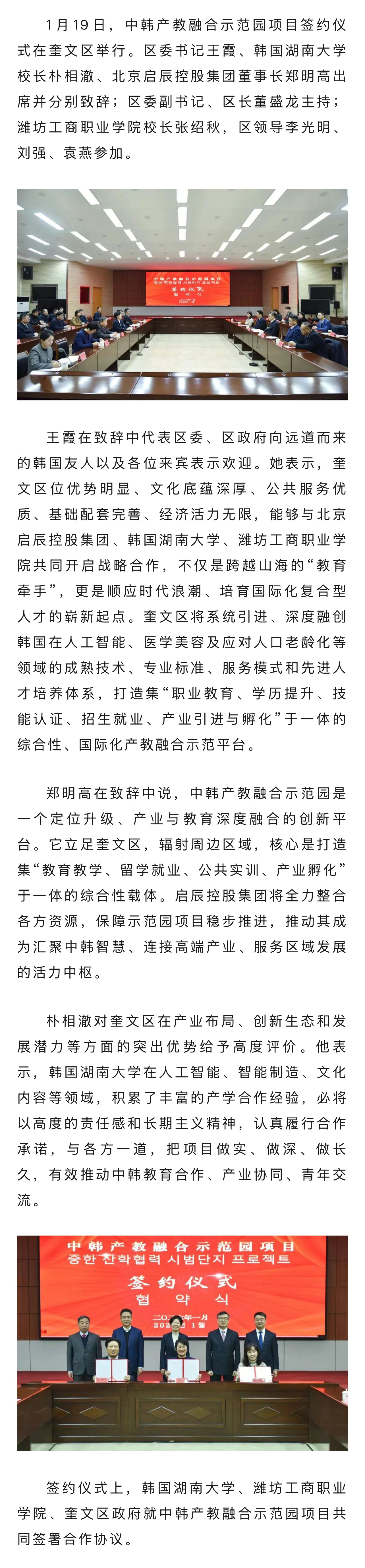 中韩产教融合示范园项目签约仪式举行
