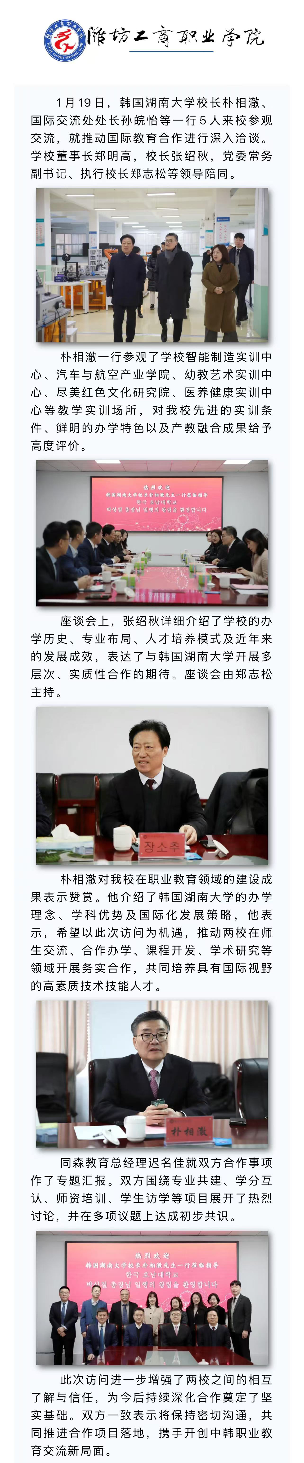 韩国湖南大学朴相澈校长一行来校考察交流【潍坊工商职业学院】